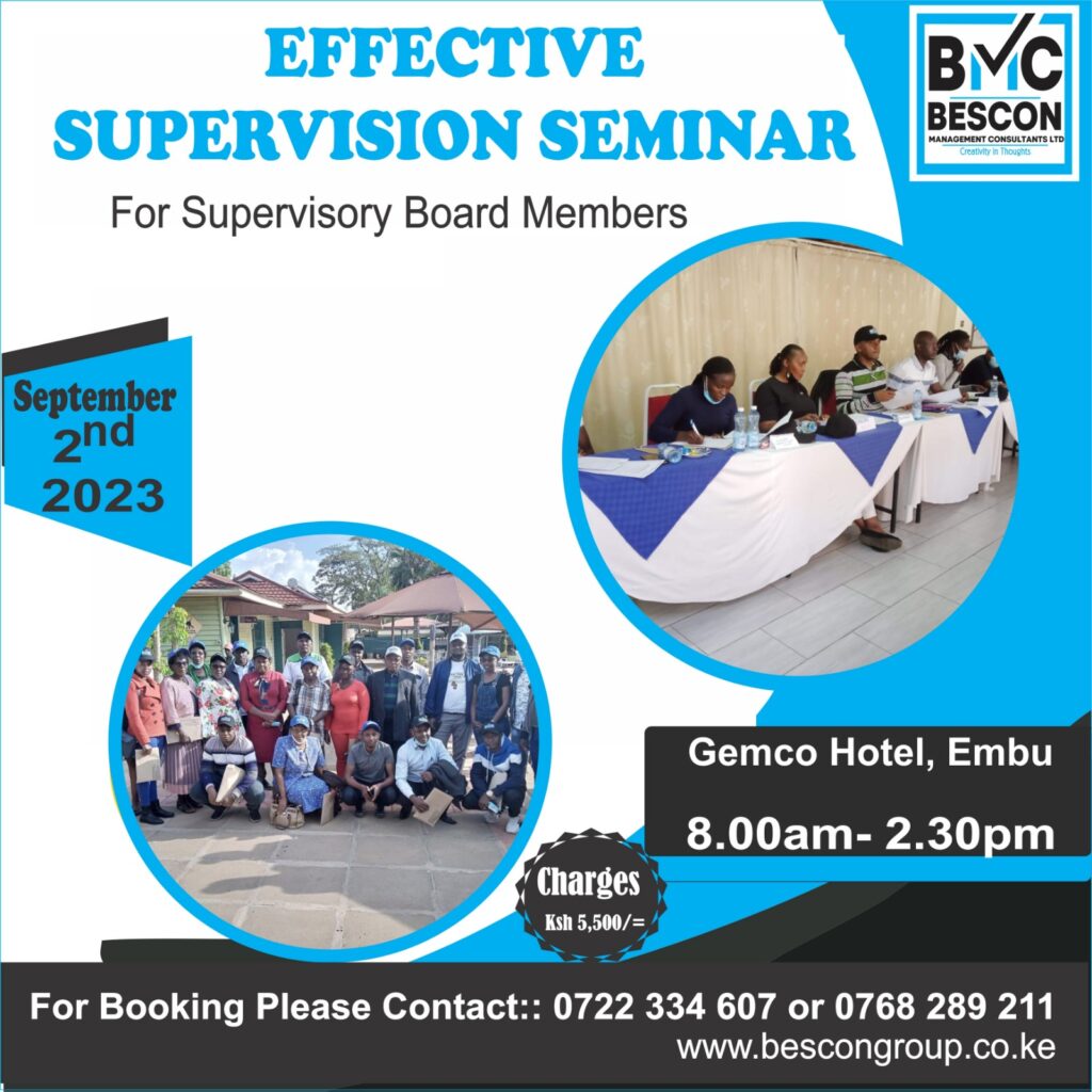 As the success and sustainability of SACCOs greatly rely on effective supervision, it is essential for committee members to possess the necessary knowledge and skills to fulfill their supervisory responsibilities diligently. We are thus excited to announce an upcoming seminar on EFFECTIVE SUPERVISION on Saturday, 2nd September 2023 at Gemco Hotel Embu, for supervisory board members.